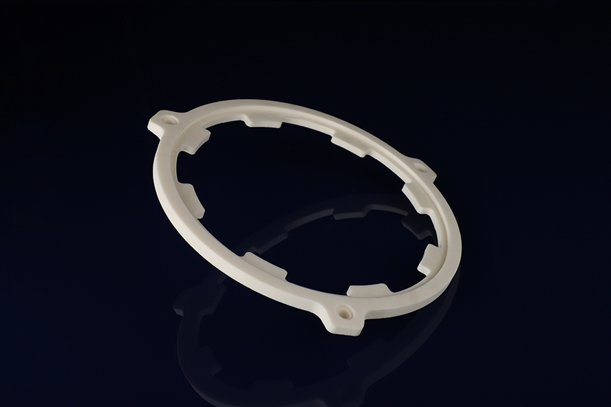 氧化鋁對準環與支撐環是半導體刻蝕、沉積等制程中的關鍵精密部件,憑借材料本征優勢,正在替代金屬與塑料結構。其首要價值在于超高尺寸穩定性:氧化鋁熱膨脹系數低,且硬度高,經精密磨削后圓度可控制在微米級,確保晶圓在升降溫循環中始終維持精準同心度,有效抑制邊緣偏差導致的良率損失。其次,氧化鋁具有優異的電絕緣與等離子體耐蝕性,擊穿電壓達20 kV以上,對含氟、含氯高能等離子體表現出極佳的化學惰性,可在腔體中穩定工作上千小時,顯著降低顆粒污染與金屬離子析出風險。其熱導率約30-40 W/m·K,能迅速將工藝熱量均勻散開,避免局部熱斑導致的晶圓翹曲。此外,氧化鋁可通過注塑-燒結實現凈成形,后期僅需微量精加工,綜合成本較氮化硅低30%以上,為12英寸乃至更先進制程的規模化應用提供了經濟可行的路徑。